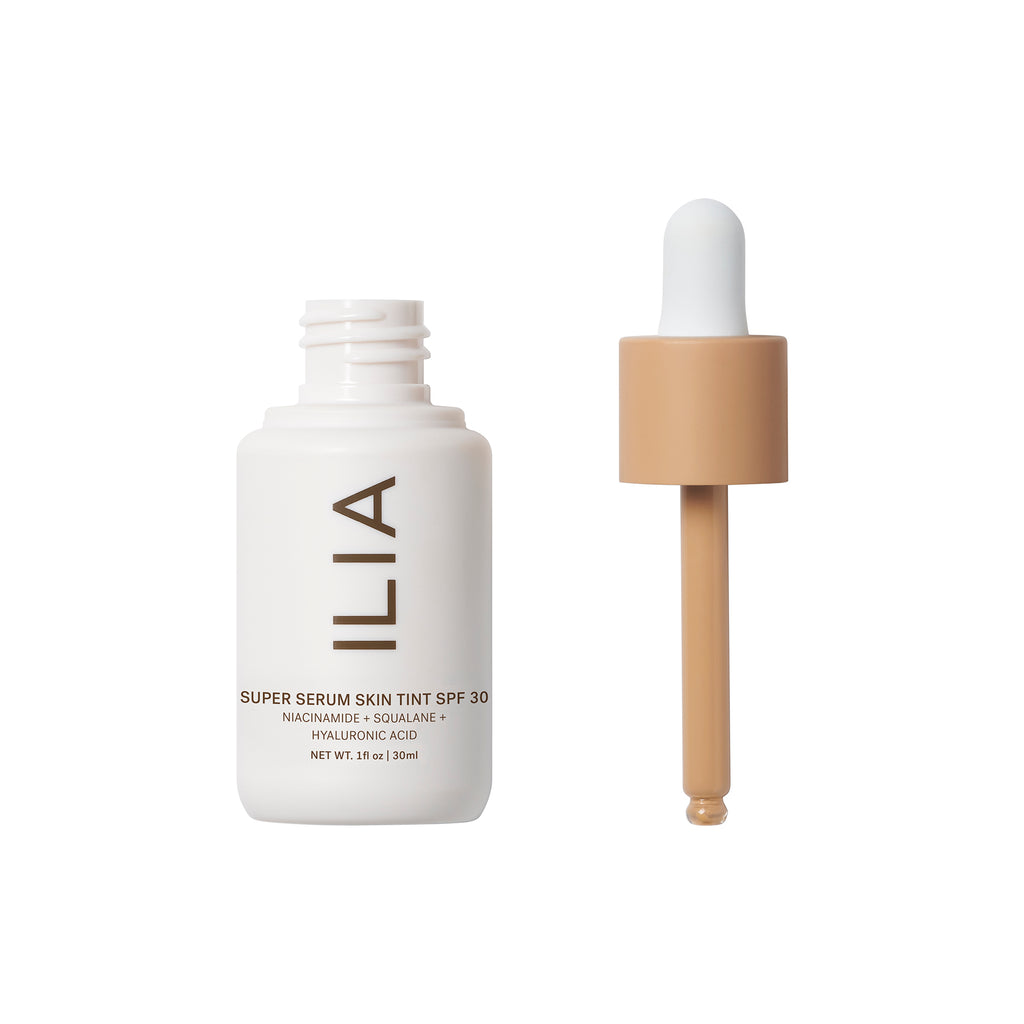 A clean, light-coverage, tinted mineral SPF30* serum that boosts skincare benefits. Your tinted SPF will never be the same. This first-of-its-kind formula fuses skincare, makeup, and sun protection into one easy step: a weightless serum that leaves your skin looking like skin. Boasting SPF30* coverage with non-nano zinc oxide (safely shielding skin from UVA, UVB, UVC, blue light, and infrared) in an unprecedented 18 shades. Created with a blend of Hyaluronic Acids, plant-based Squalane, and Niacinamide, ILIA's Skin Tint evens tone, softens fine lines and imperfections, and dries down to a natural, dewy finish. And this super serum doesn’t stop there: it also creates a natural barrier for your skincare—sealing in hydration, plumping skin, and boosting any antioxidant effectiveness by 200%. Plus, it’s silicone-free, fragrance-free, chemical screen-free, oil-free, non-comedogenic, and safe for sensitive skin. This is SPF, made super.